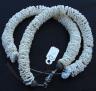 I have tried to research these 10-11mm discs that were strung onto a necklace. They are softer than most seashells, being porous similar to eggshell. They are fragile, you can see many have broken. The ruffles are on both sides, but one side has pronounced texture and the other side has gentler undulations. They vary greatly, each unique.