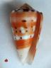 I won this example of this beautiful cone this PM on eBay to compare against my 60.6 mm shell (separate post here). This one has much brighter & startling colors & patterns. Delicious bright orange with pink spiral lines, natural lip, flawless. F+++/Gem. Both shells of this species came from Reunion Island.